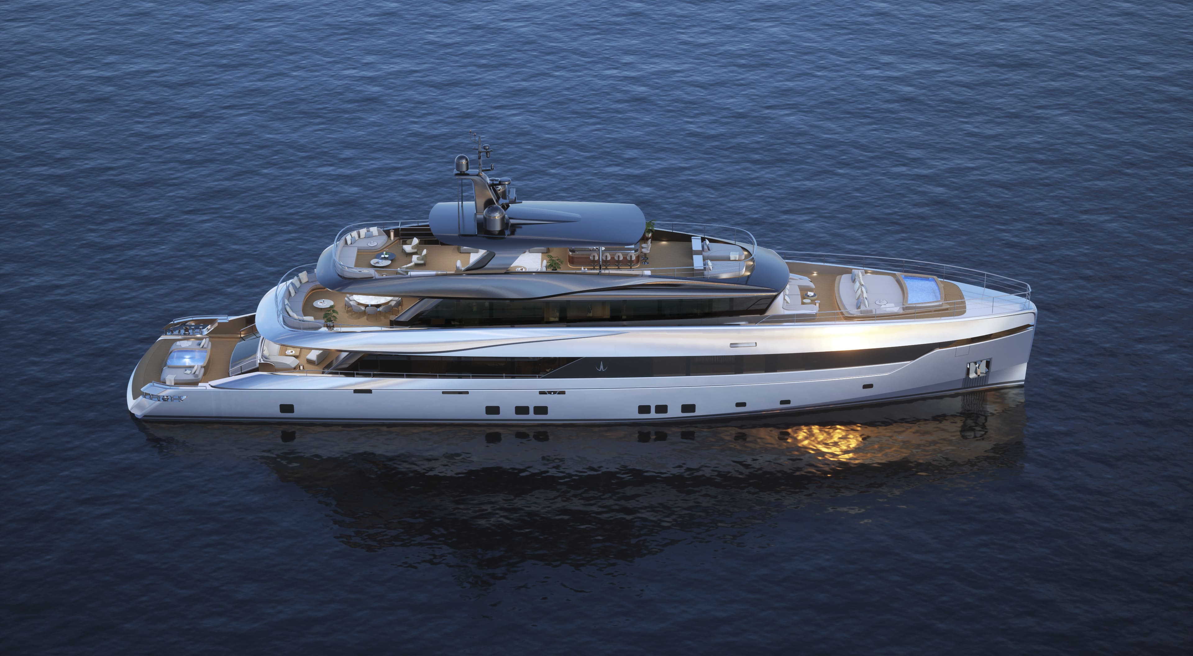 Nolimits 45超级游艇由Rossinavi与Fulvio de Simoni联袂打造外观设计,并由Touch Studio操刀室内设计。Nolimits 45超级游艇建造长度为45米,致力于融合强大的舒适性和航海性能,以其坚如磐石的船体工艺、通透大气的空间布局惊叹世人,让航海爱好者尽情遨游于天地之间,领略广袤无垠的深海奇观。